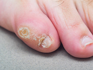 You could use a pumice stone to remove the thickened skin a little at a time or relieve pressure between the toes with a foam wedge, but if you are unsure of what to do, or need special attention, consult a registered podiatrist/chiropodist.